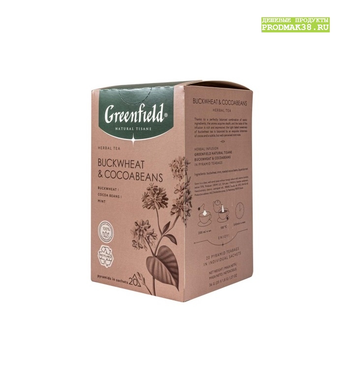 Чай кофе какао, Гринфилд Нэйчерал ТИЗАН Баквит энд Какаобинс чай гречишный, мята, какао 20 пирам. 1/8. Возможна реализация оптом, под заказ, с доставкой или самовывозом со склада. Продажа осуществляется как юридическим, так и физическим лицам.