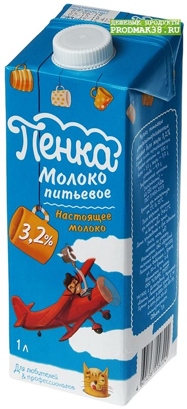 | Молоко "ПЕНКА" (с крышкой) 3,2% 1 л 1/12 до авг.26