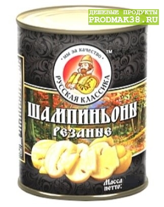 | Шампиньоны резаные Русская Классика 850 г 1/12