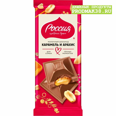 Шоколад РОССИЯ молочный с карамелью и арахисом 75 гр 1/18